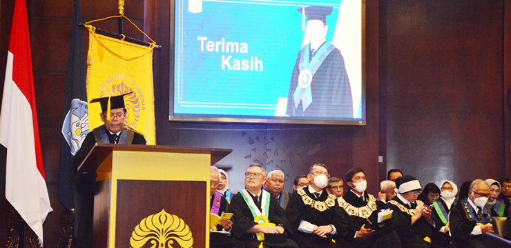 Prosesi pengukuhan guru besar dipimpin langsung oleh Rektor UI, Prof. Ari Kuncoro, SE, MA, Ph.D., dan disiarkan secara virtual melalui kanal Youtube Universitas Indonesia dan UI Teve. “Hasil kajian toksikologi ini sangat diperlukan dan membantu dalam pengambilan keputusan secara bijak antara risiko manfaat bahan kimia secara presisi selain faktor parameter toksik penting lain untuk dikaji, sehingga pengelolaan risiko bahan kimia aman bagi kesehatan masyarakat dan lingkungan,” ujar Prof. Ari. Turut hadir dalam prosesi tersebut, Sekretaris Kabinet RI 2010-2014, Dr. Dipo Alam dan Dirjen Penegakan Hukum Lingkungan Hidup dan Kehutanan, Kementerian Lingkungan Hidup dan Kehutanan Republik Indonesia, Rasio Rido Sani.